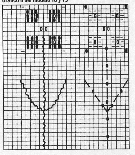 Tejer los motivos según los graficos I y II en punto jersey derecho.